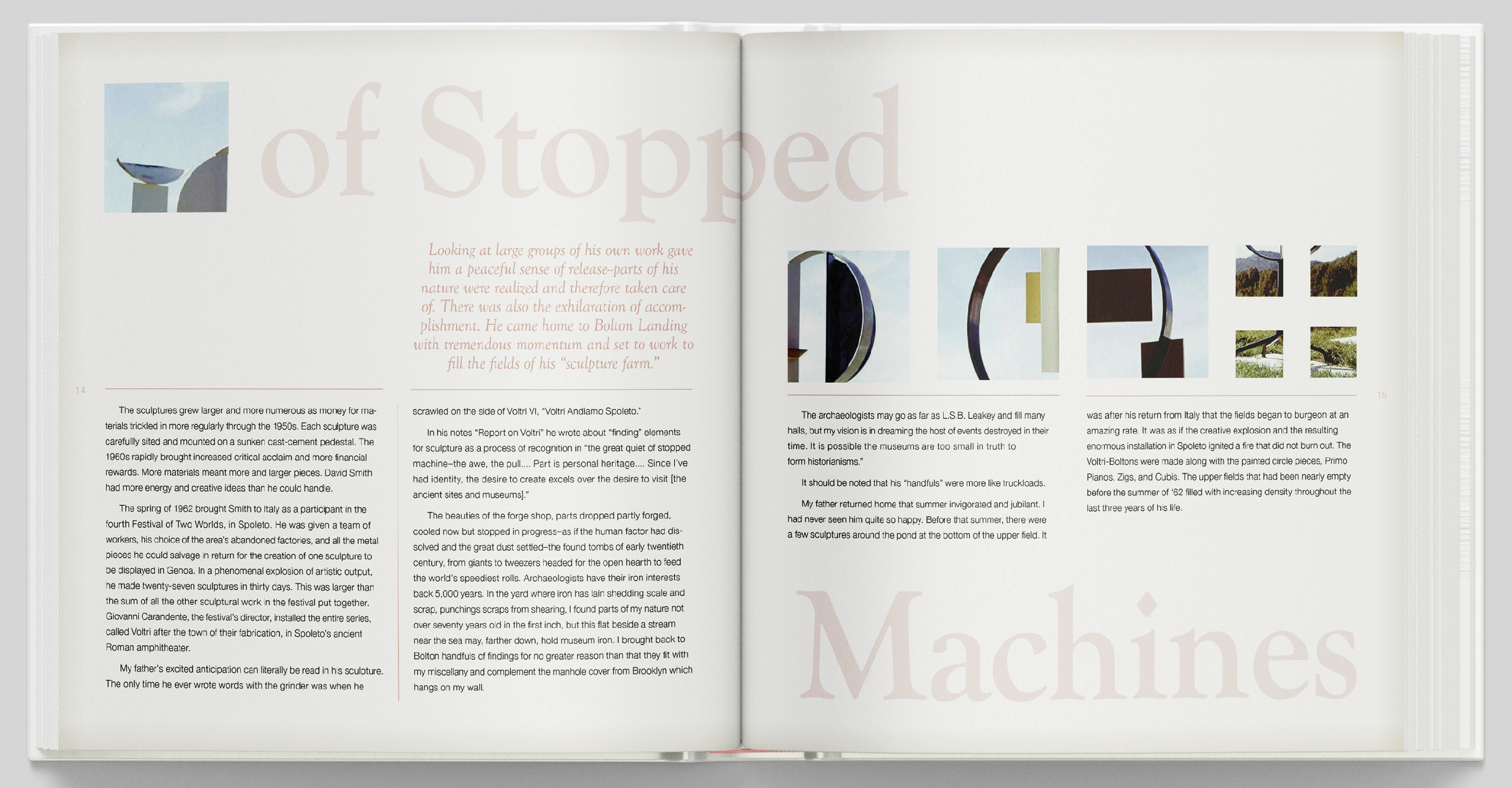 A book that focuses on the life and art of sculptor David Smith. Scroll horizontally to read.
