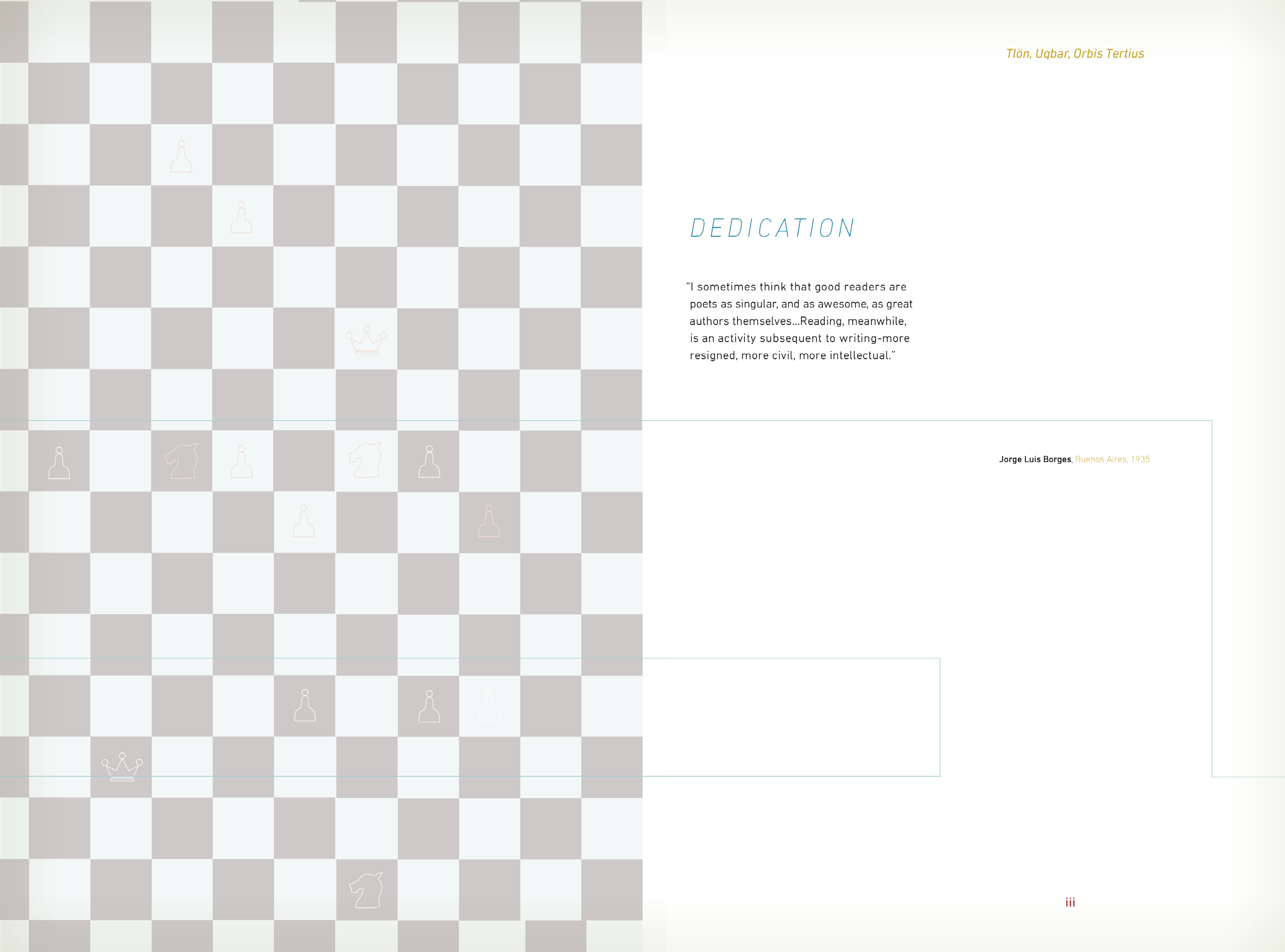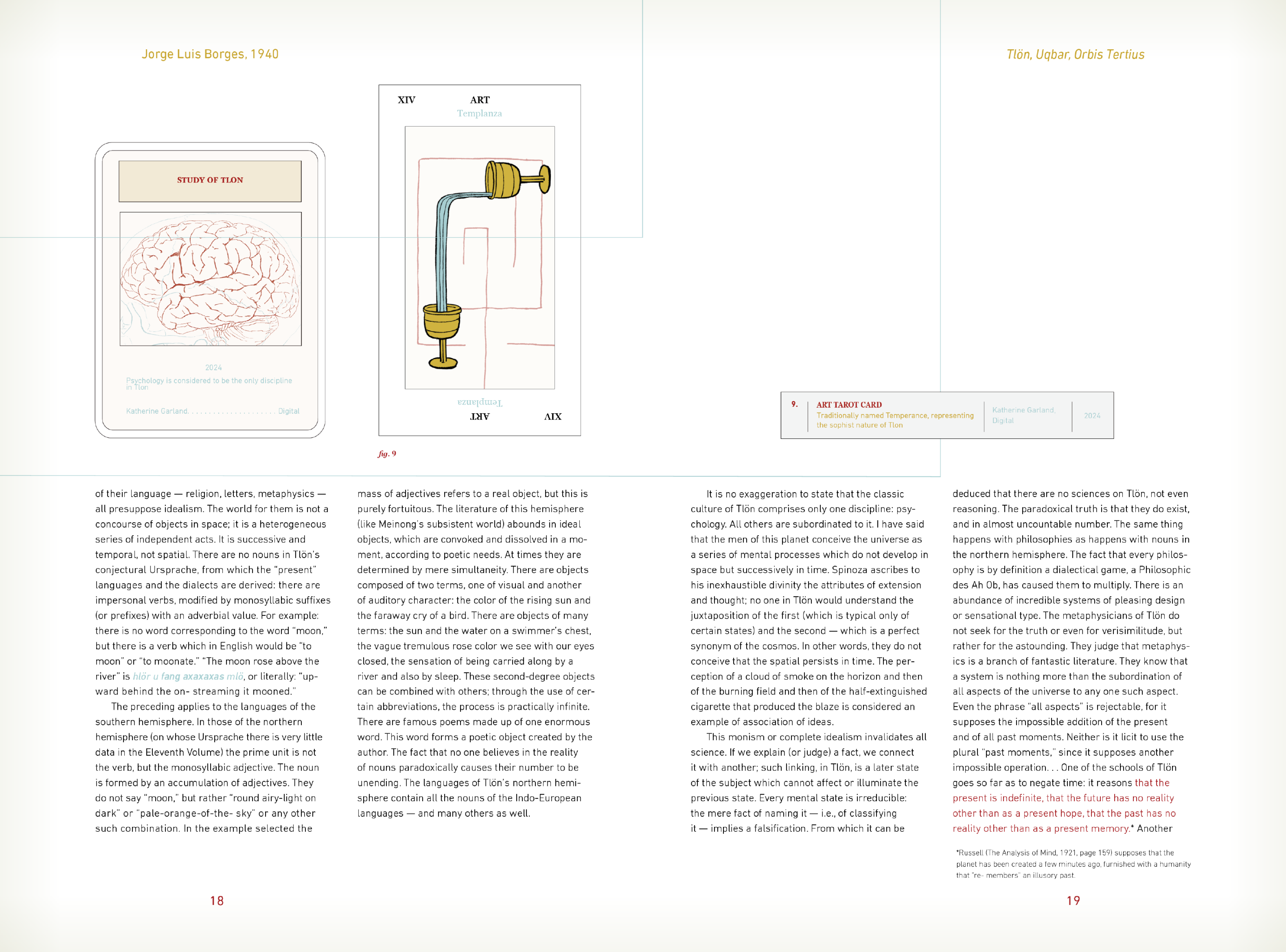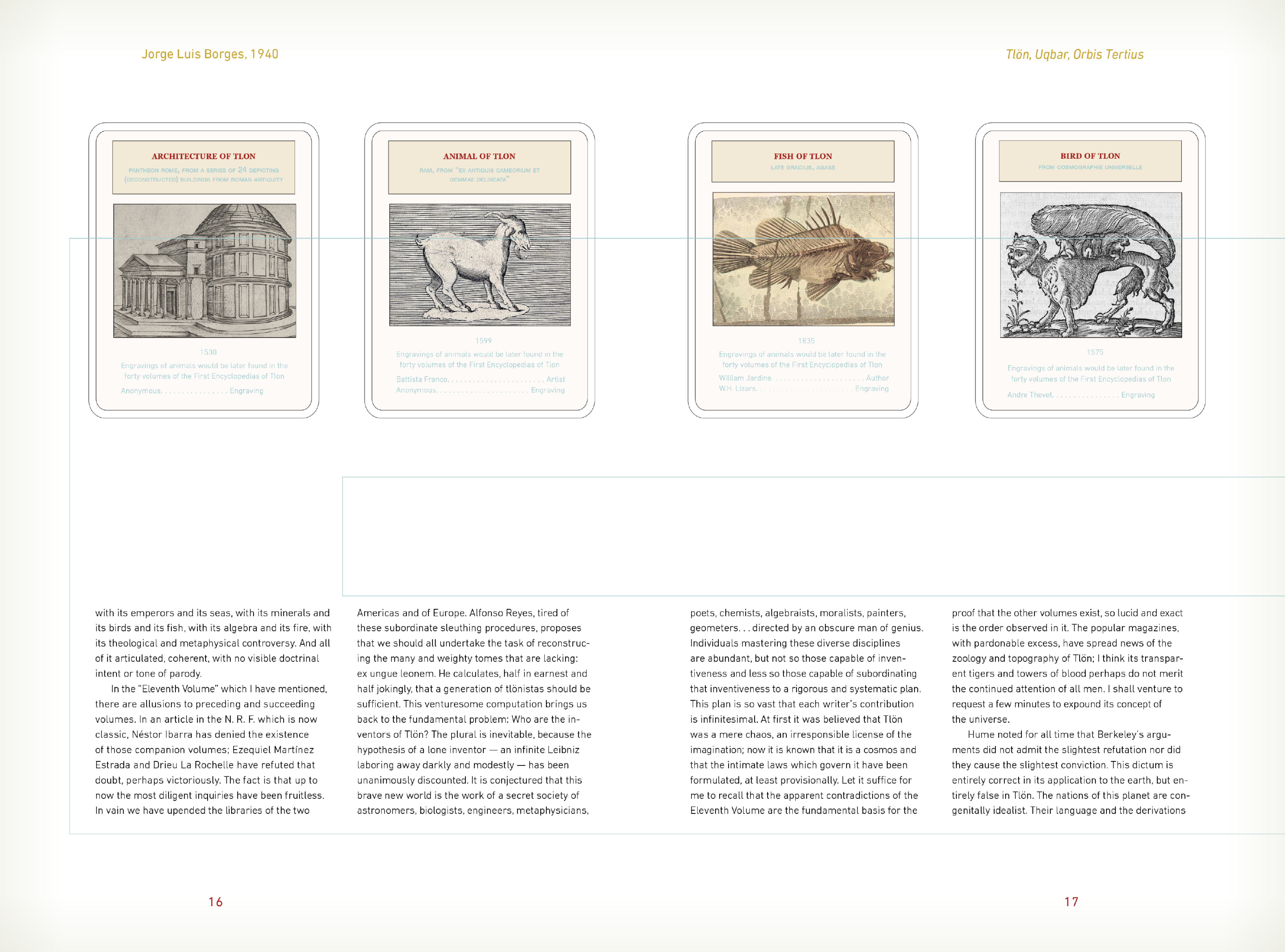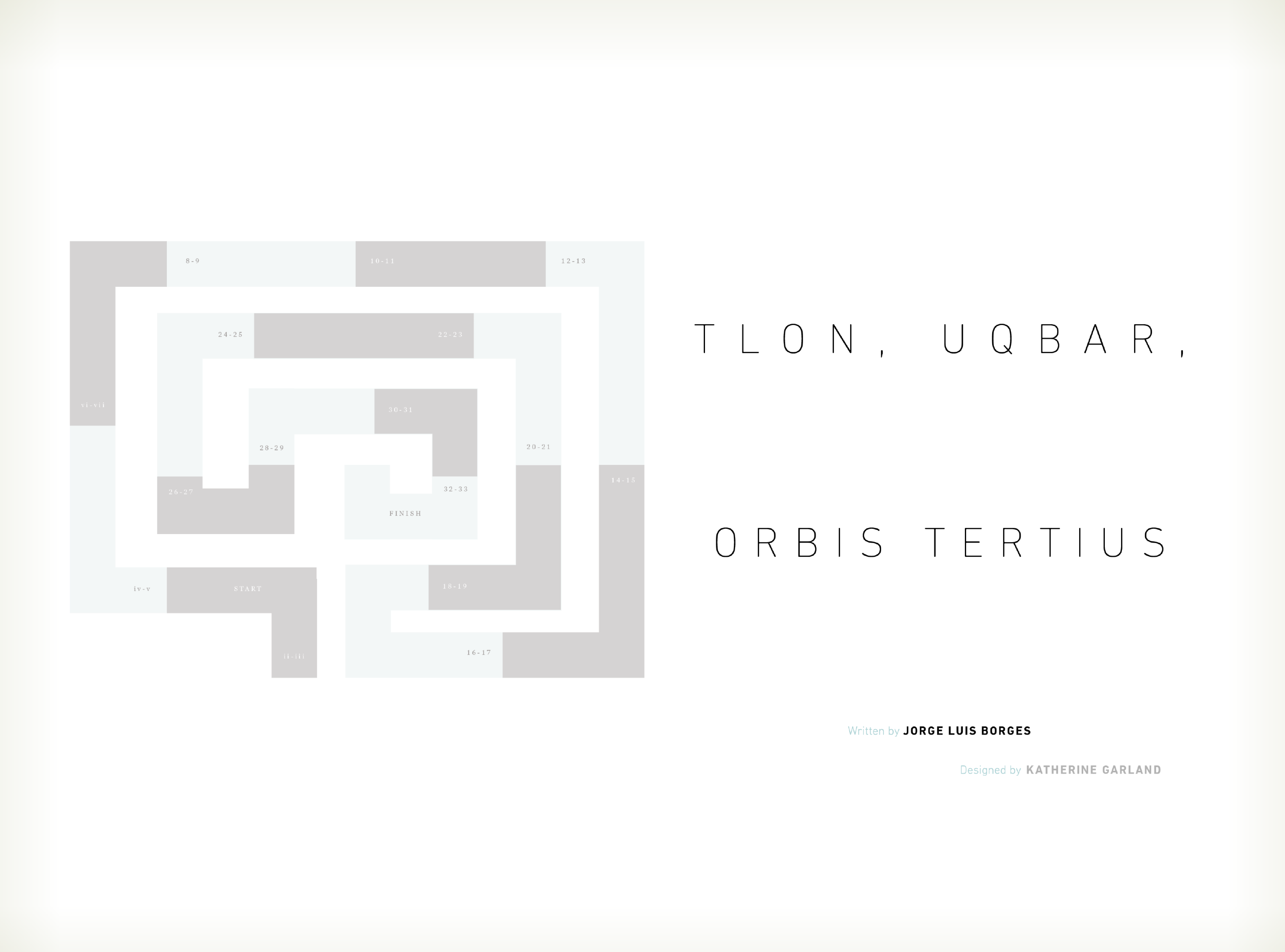 A full book design of the short story Tlon, Uqbar, Orbis Tertius by Jorge Luis Borges. Scroll horizontally to read.