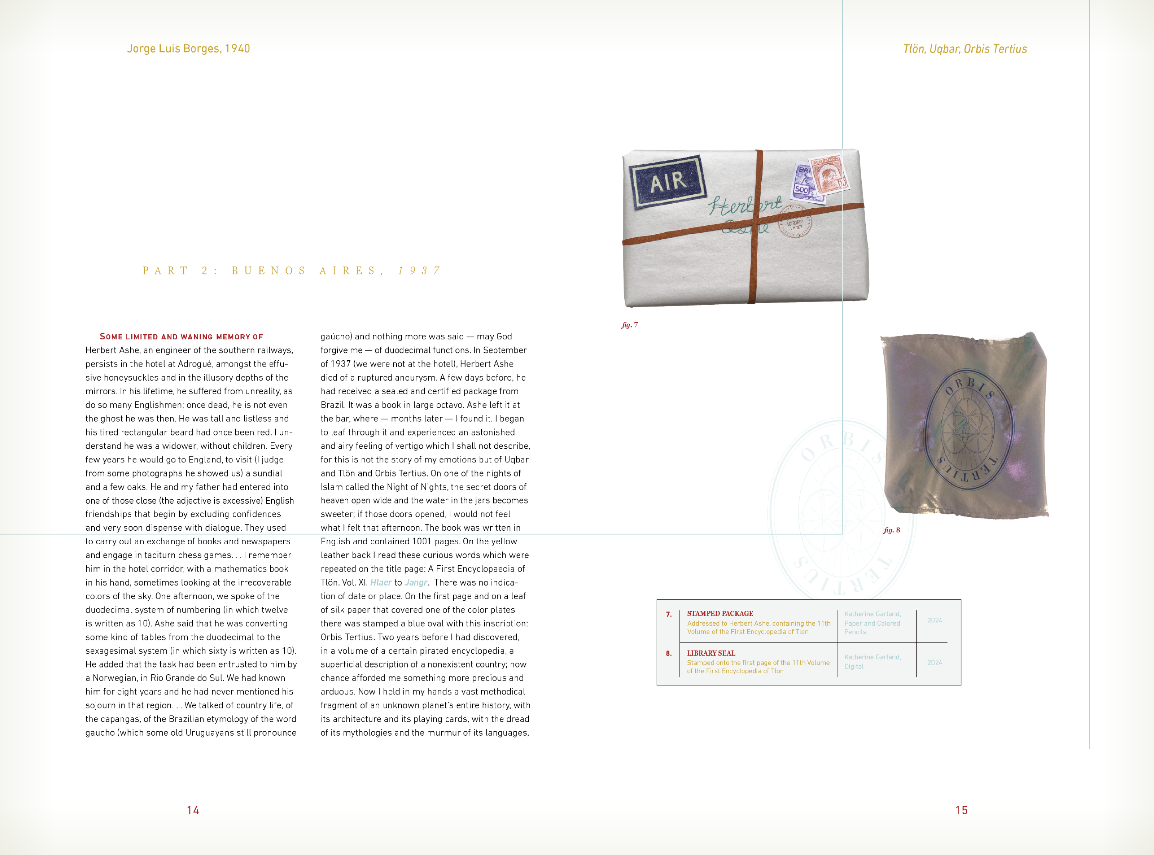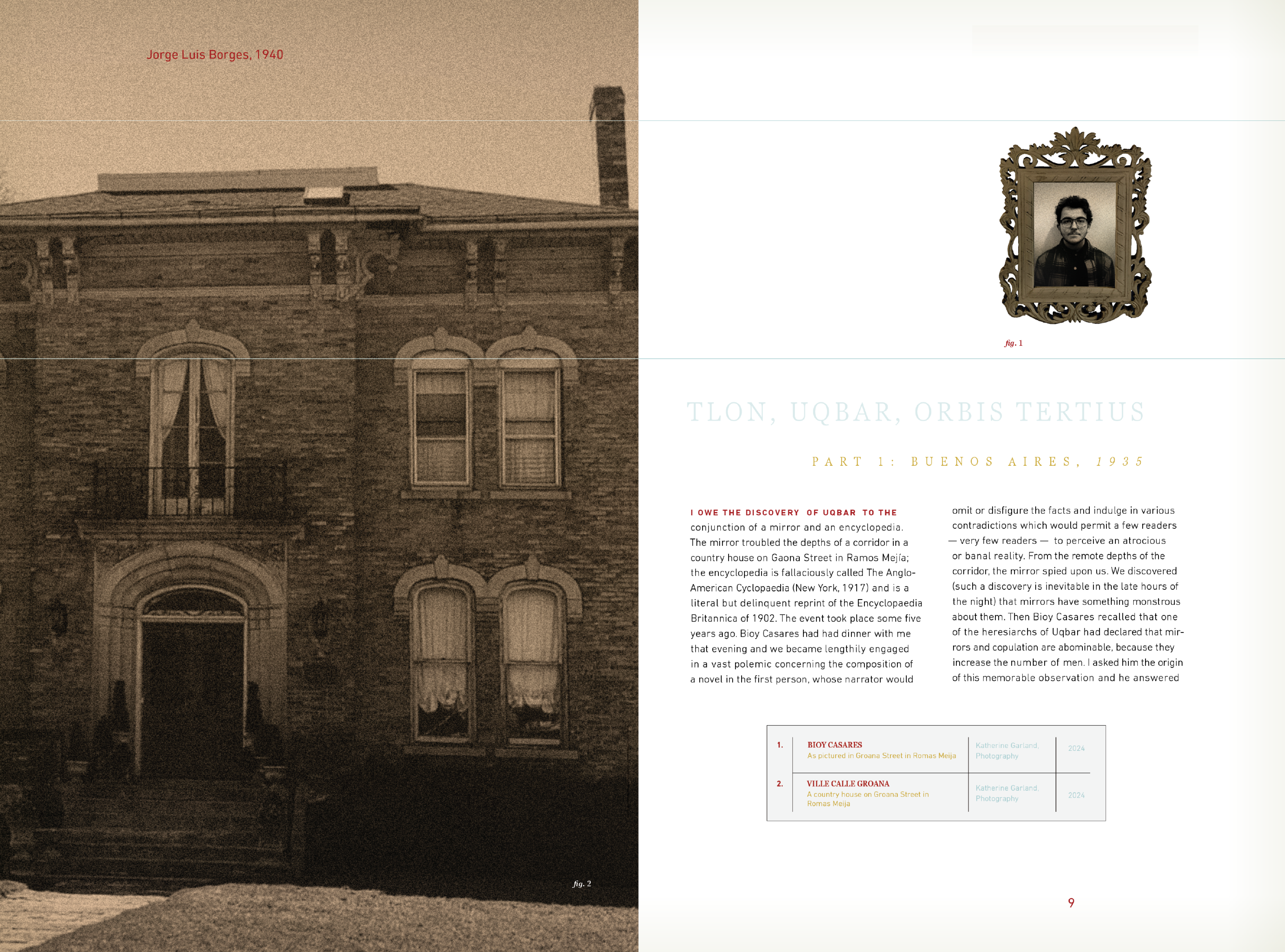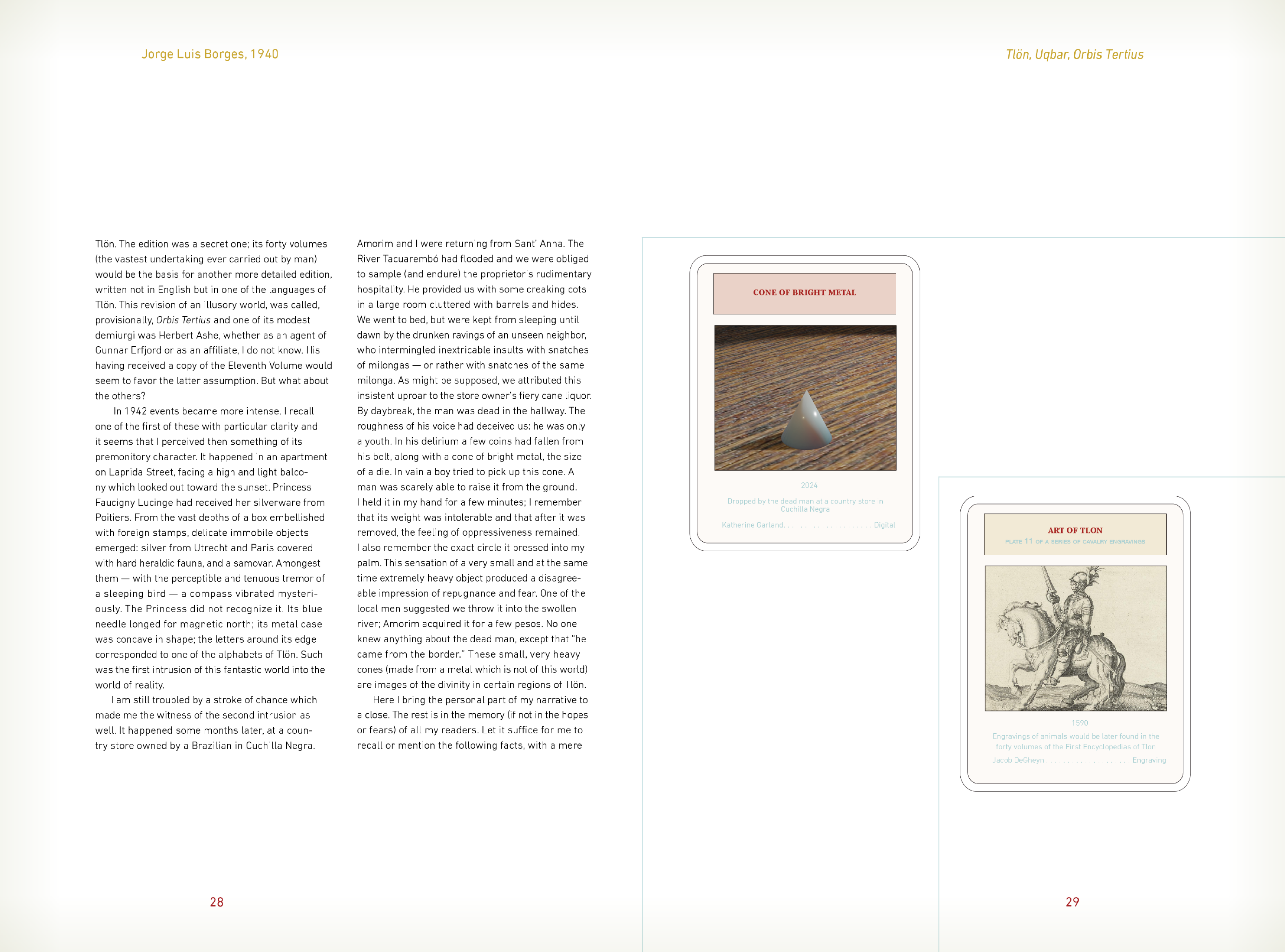 A full book design of the short story Tlon, Uqbar, Orbis Tertius by Jorge Luis Borges. Scroll horizontally to read.