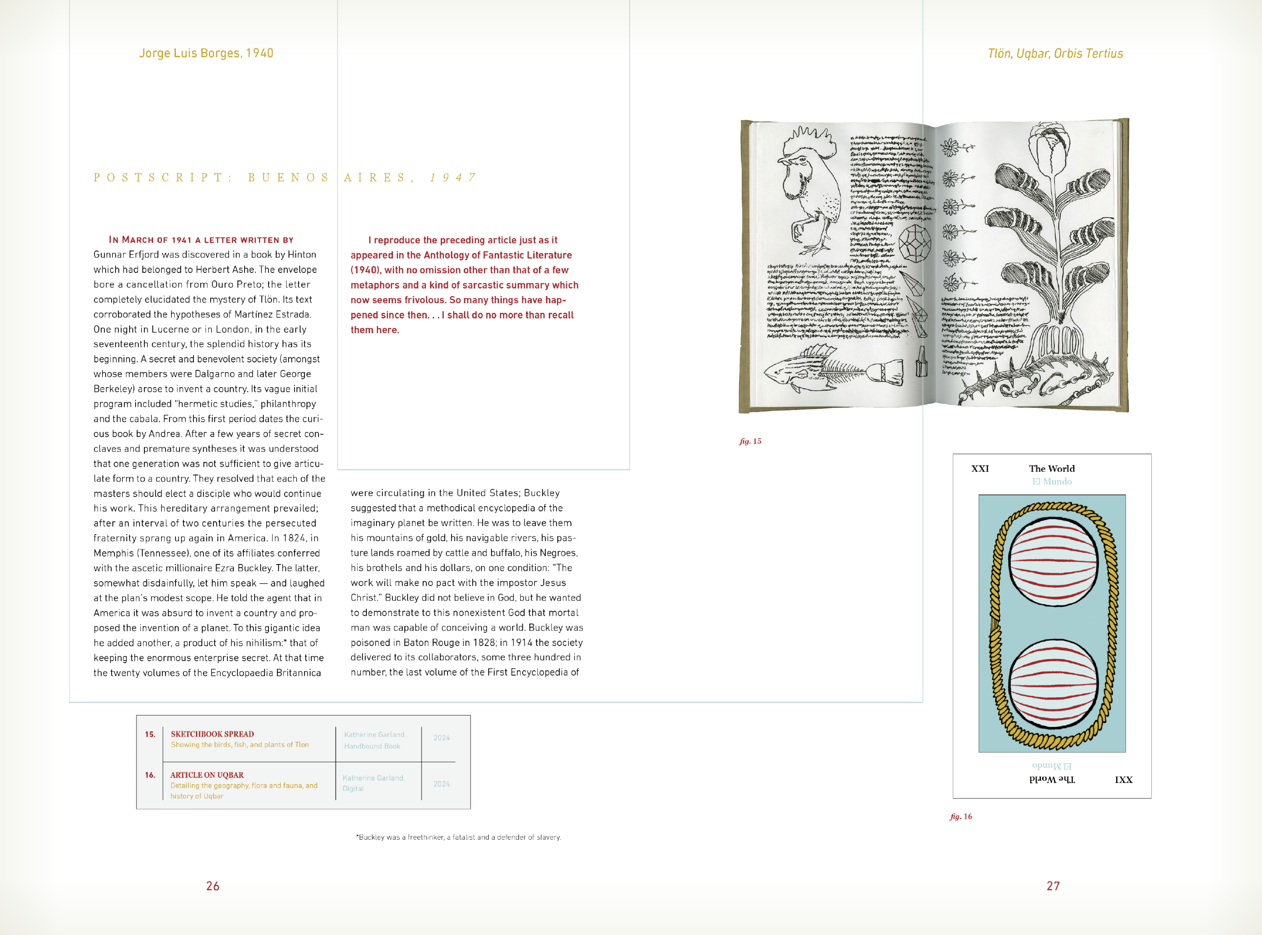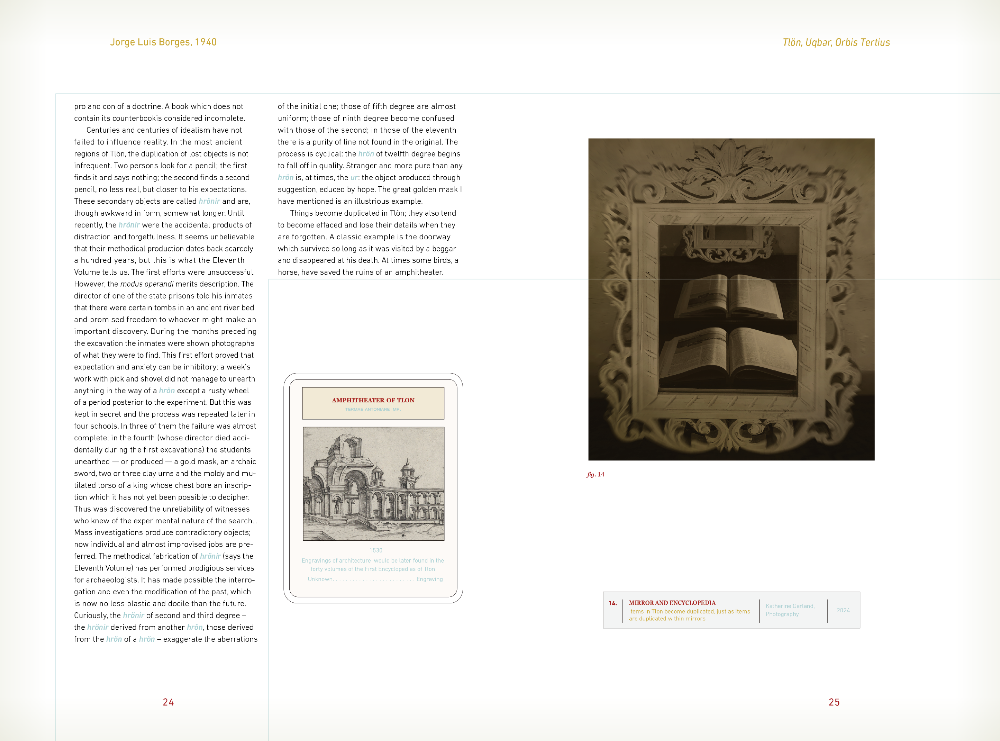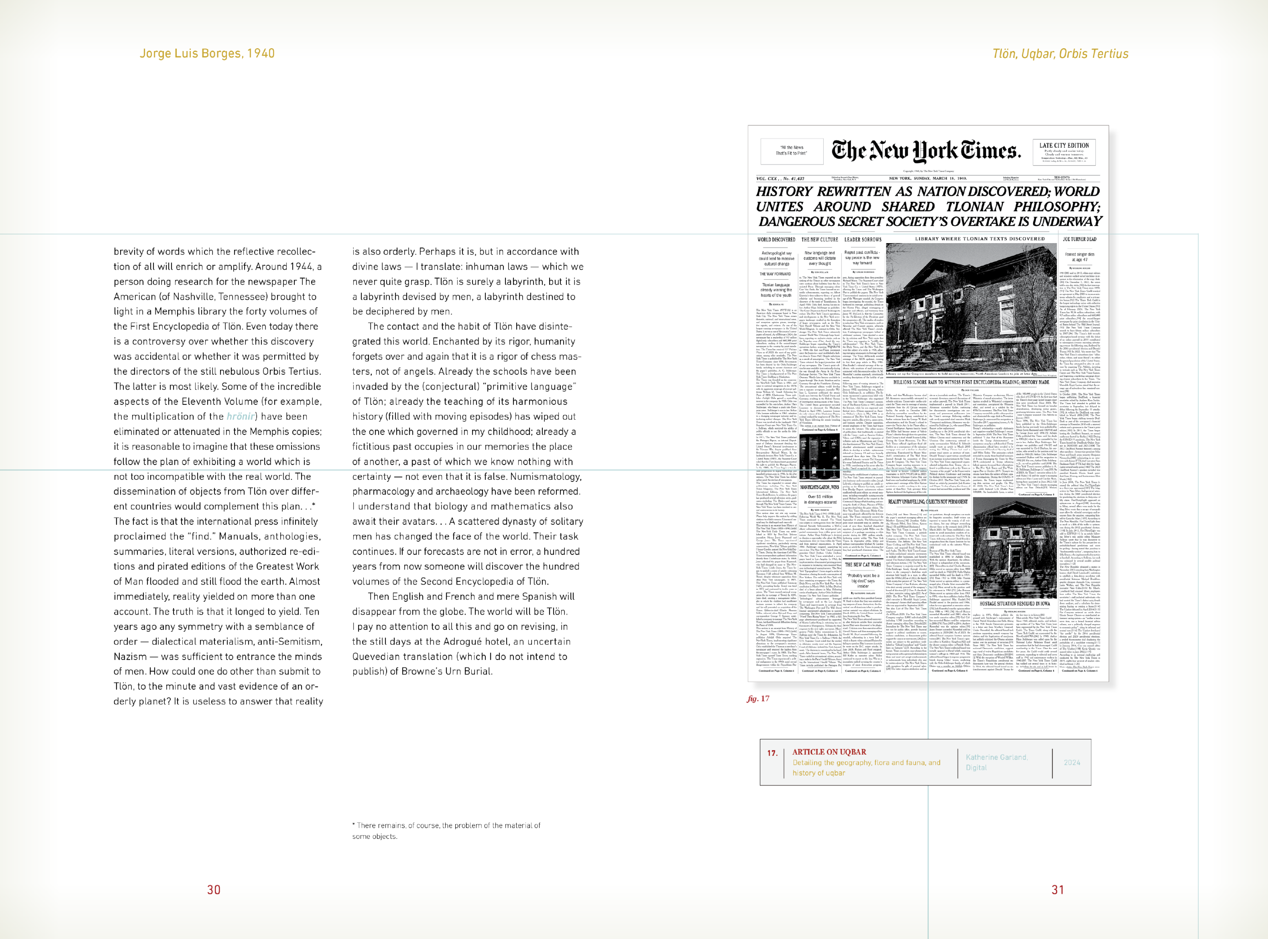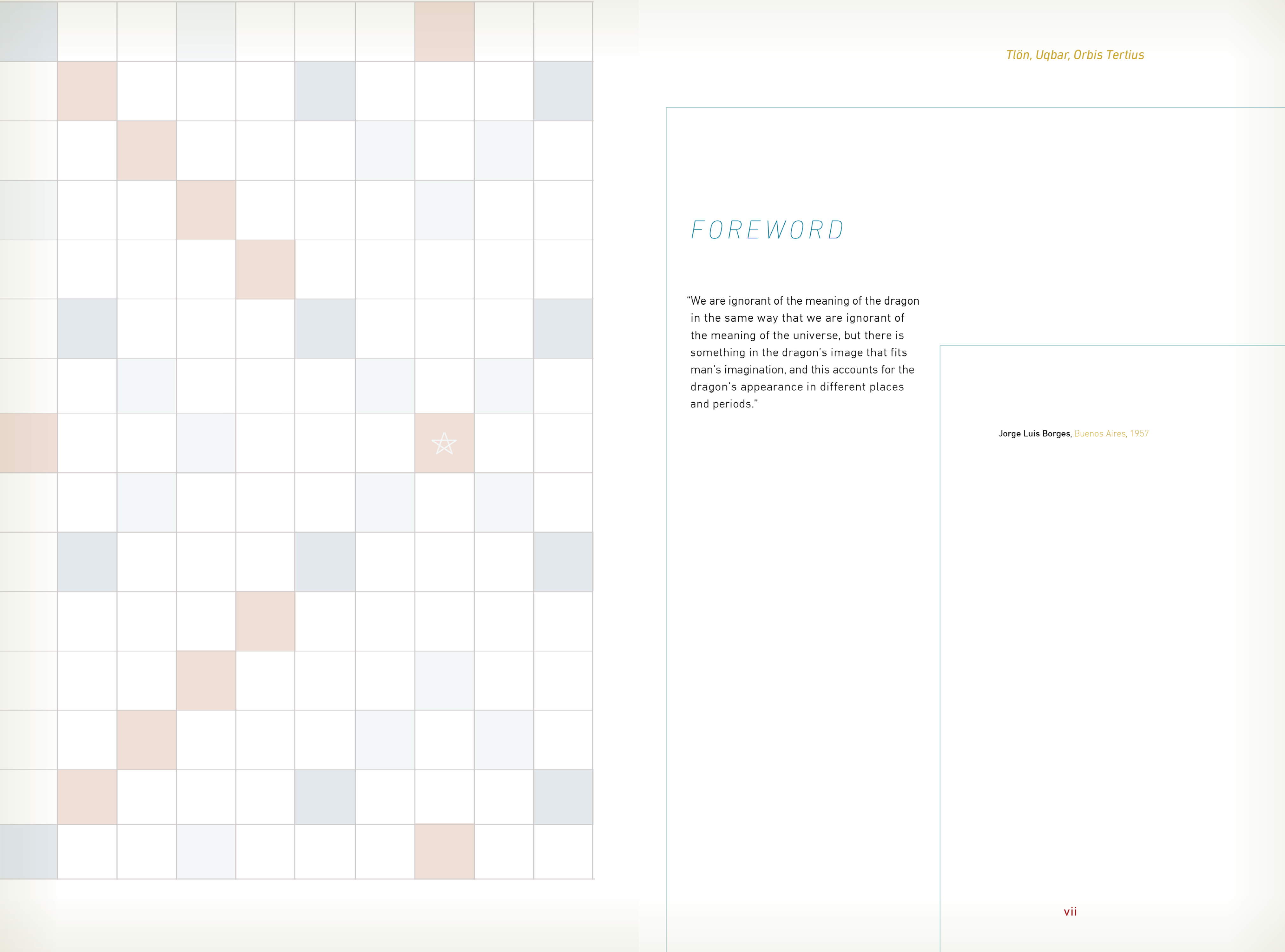 A full book design of the short story Tlon, Uqbar, Orbis Tertius by Jorge Luis Borges. Scroll horizontally to read.